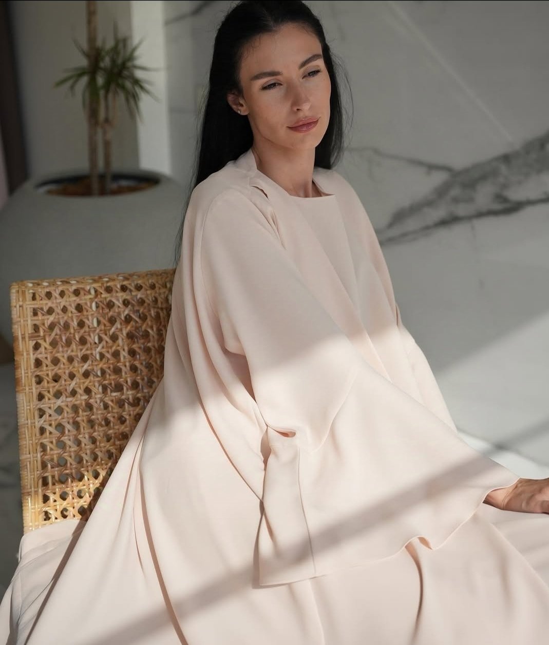Beautiful Beige colour Abaya in crepe fabric with butterfly sleeve.