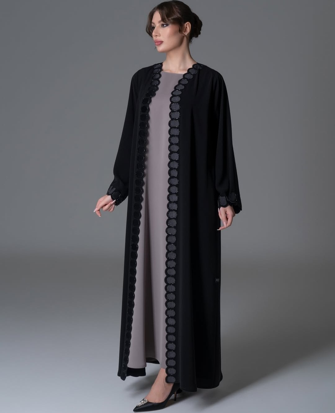 Introducing the Moments Design Abaya timeless collection, crafted in stunning design that blends rich hues seamlessly. A refined touch ensures a graceful drape of traditional modesty with modern sophistication to your attire.