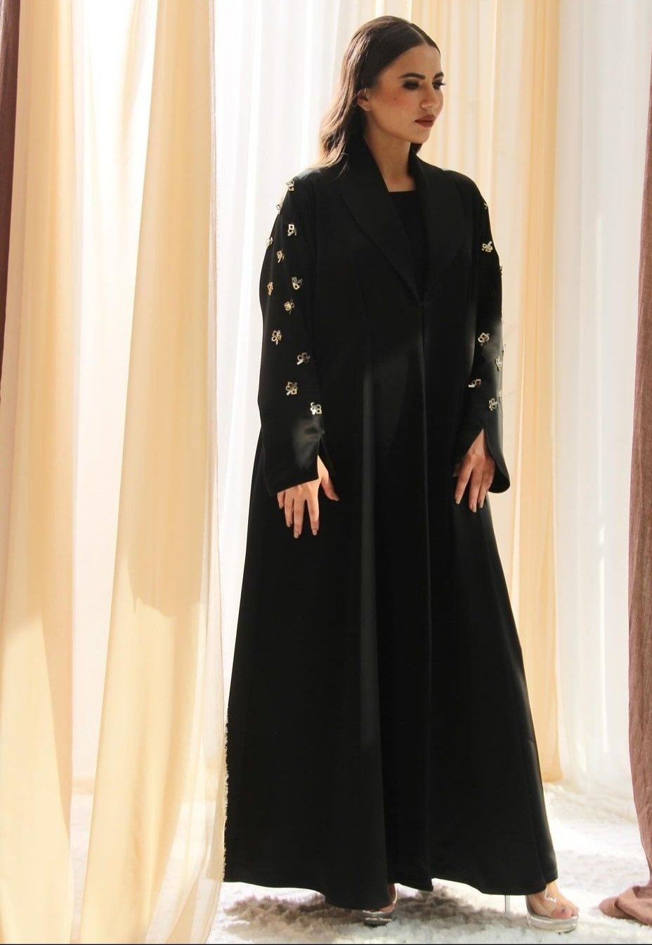 Introducing the Moments Design Abaya timeless collection, crafted in stunning design that blends rich hues seamlessly. A refined touch ensures a graceful drape of traditional modesty with modern sophistication to your attire.