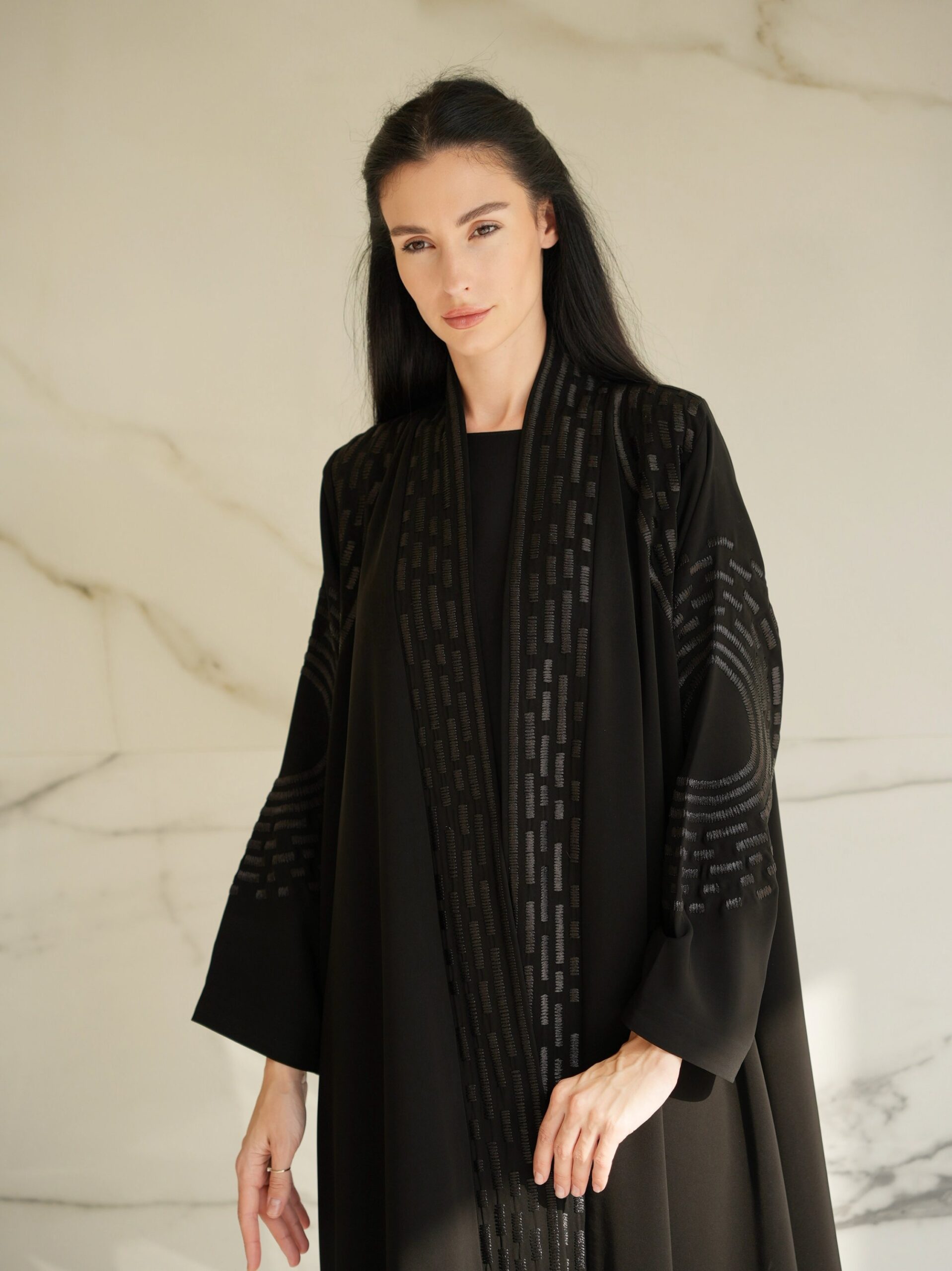 The classic black colour abaya in Butter Crepe with Embroidery design . Embrace the perfect fusion of modesty and craftsmanship, adding a touch of sophistication to your attire. The embroidery colour can be customized according to the customer request